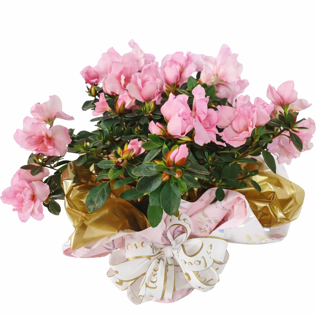 Azaleia plantada, delicada e charmosa, embalada para presente com acabamento sofisticado. Ideal para demonstrar carinho e decorar com elegância.